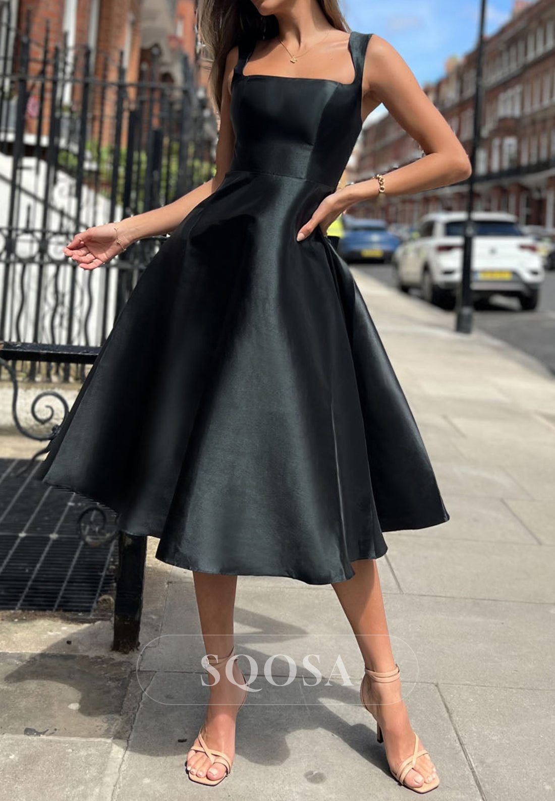 Elegant Satin A-Line Square Sleeveless Party Prom Evening Dress QP3551