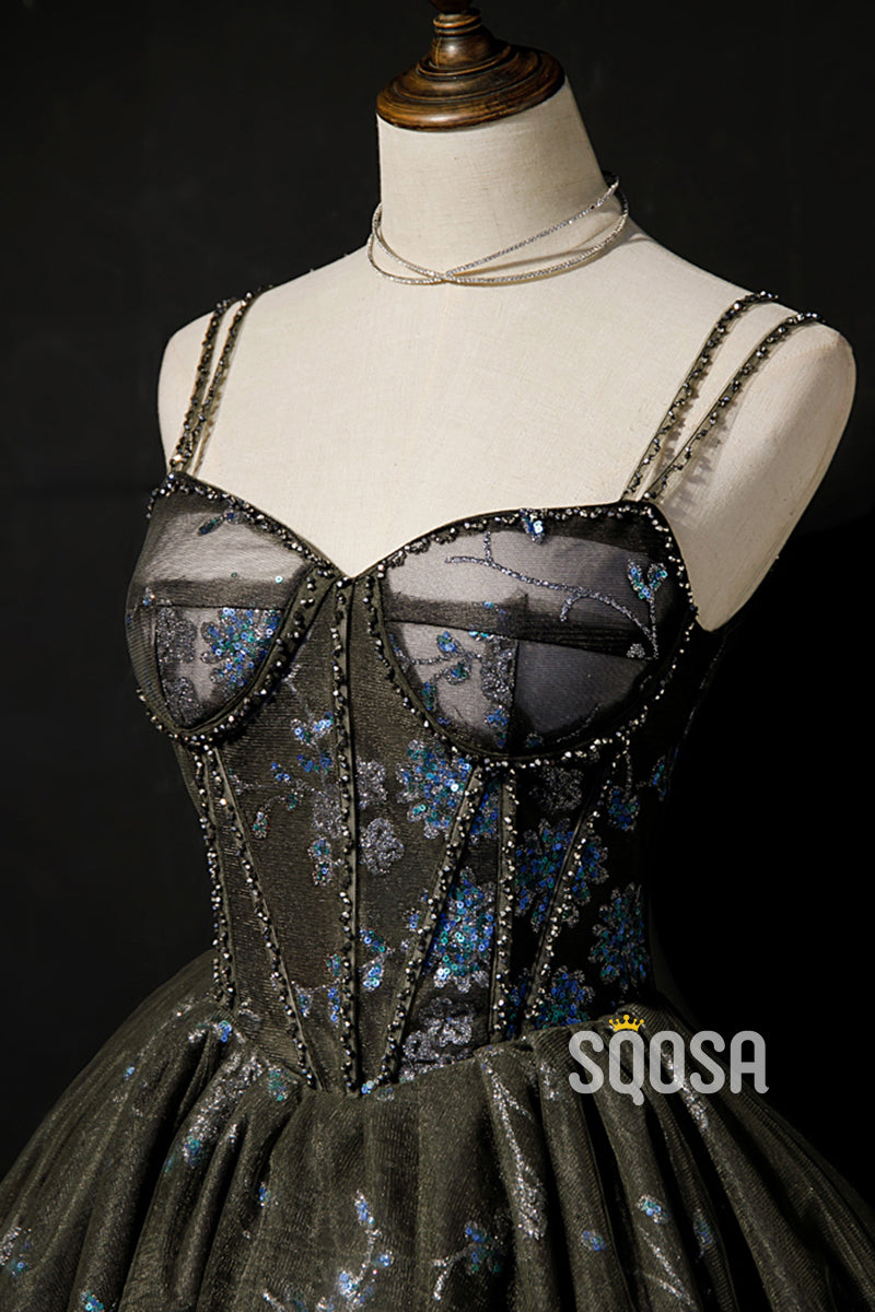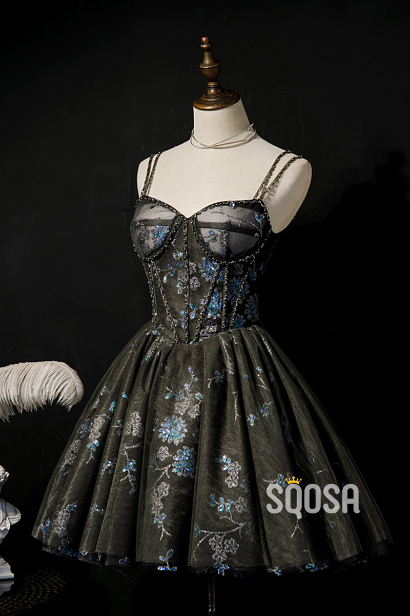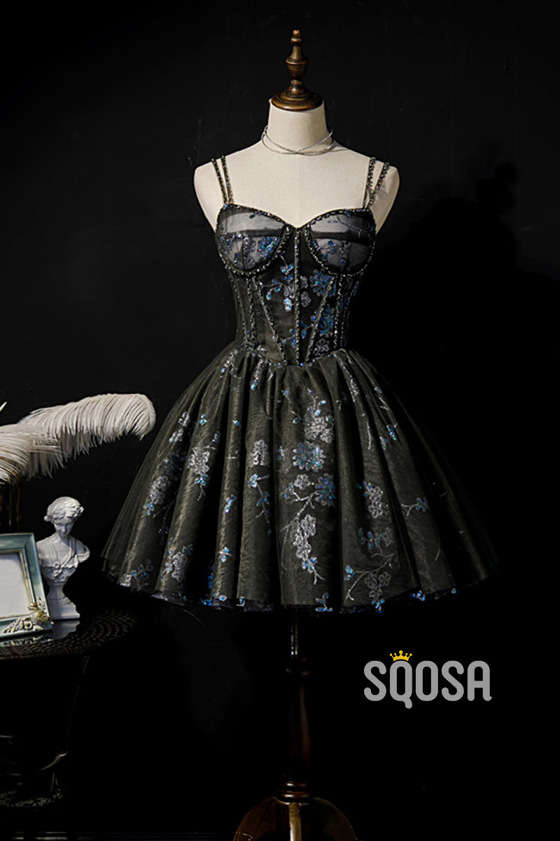 Beaded Straps Sweetheart Lace Appliques Short Homecoming Dress QS2342