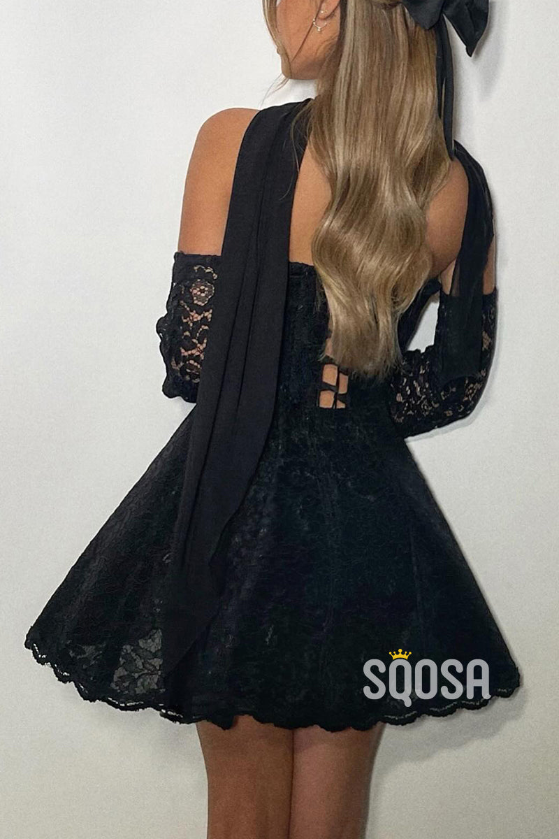 A-Line Bateau Strapless Lace Appliques Party/Homecoming Dress QS2519