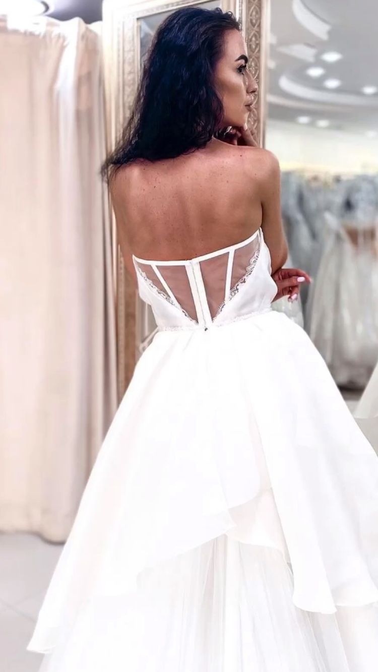 Strapless Lace Appliques A-line Rustic Wedding Dresses Bridal Gown QW2225