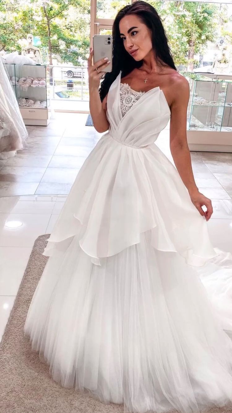 Strapless Lace Appliques A-line Rustic Wedding Dresses Bridal Gown