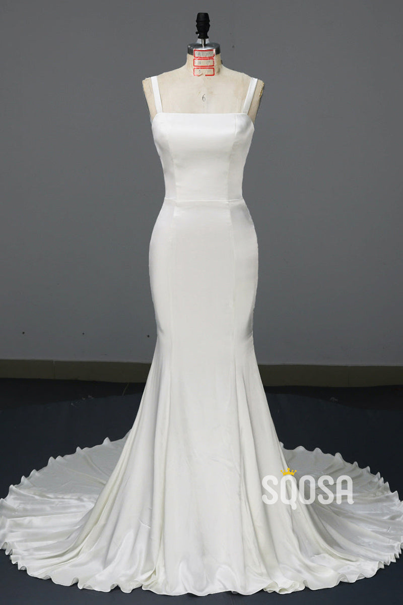 Doubel Straps Square Slik Satin Simple Wedding Dress QW2239