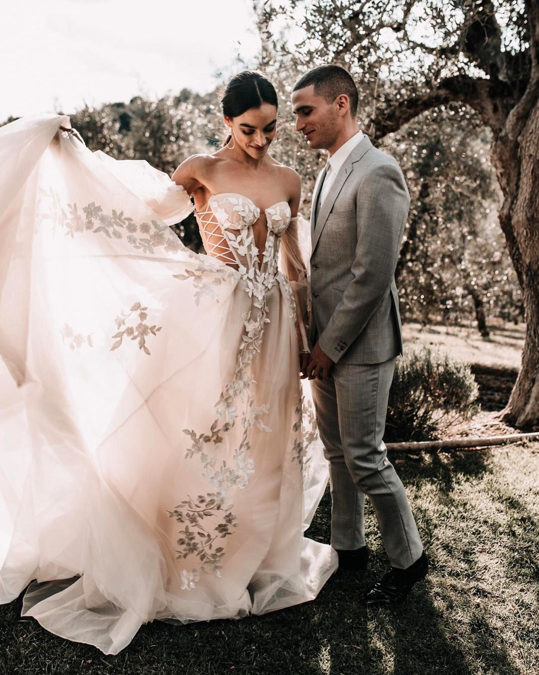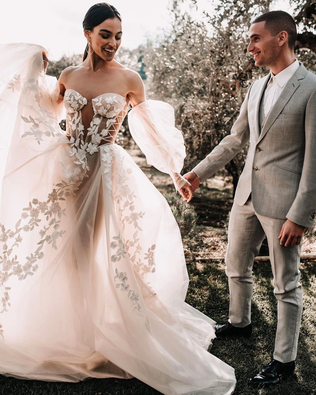 Attractive V-Neck Lace Appliques Long Sleeves Bohemian Wedding Dress QW2285