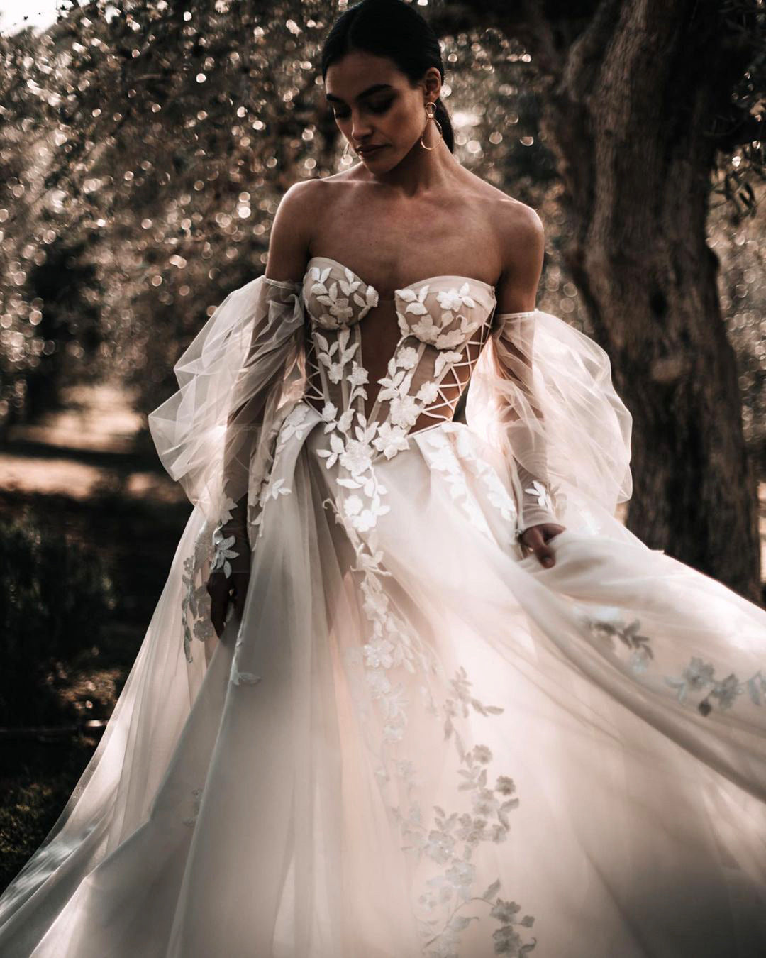 Attractive V-Neck Lace Appliques Long Sleeves Bohemian Wedding Dress