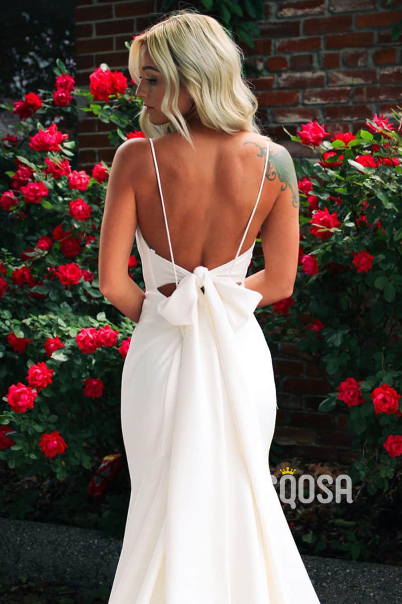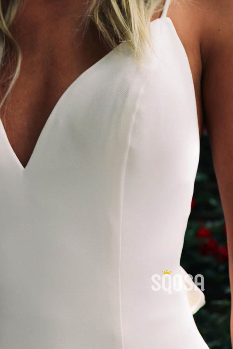 Sexy V-neck Spaghetti Straps Simple Mermaid Wedding Dress QW2372