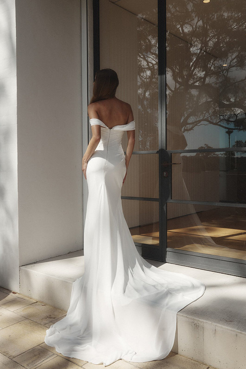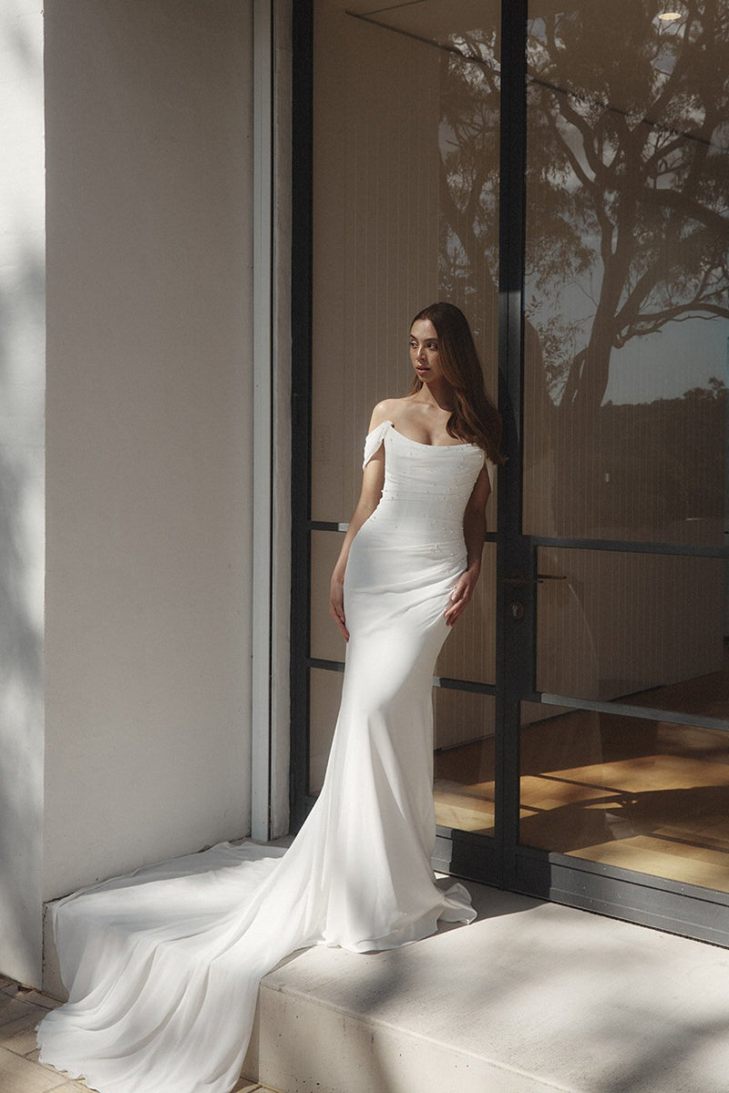 Mermaid/Trumpet Strapless Pearls Pleats Boho Wedding Dress QW2376