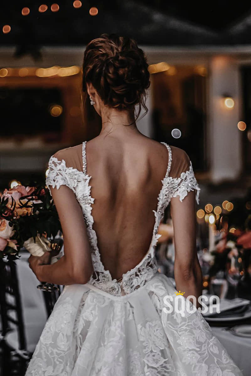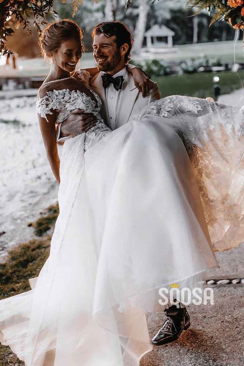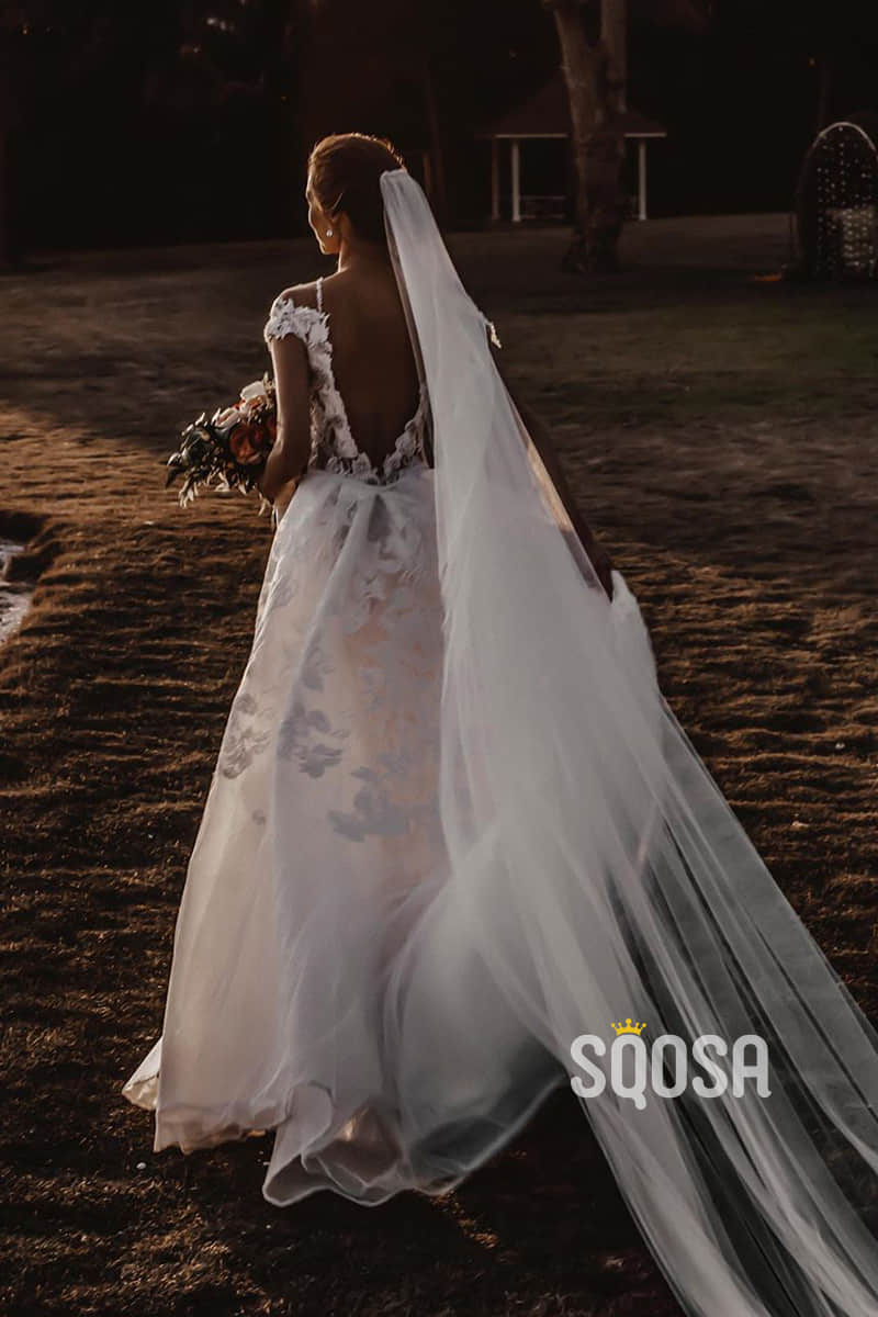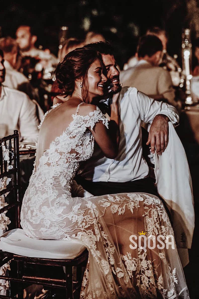 Chic Illusion Neckline Appliques Mermaid Bohemian Wedding Dress QW2419