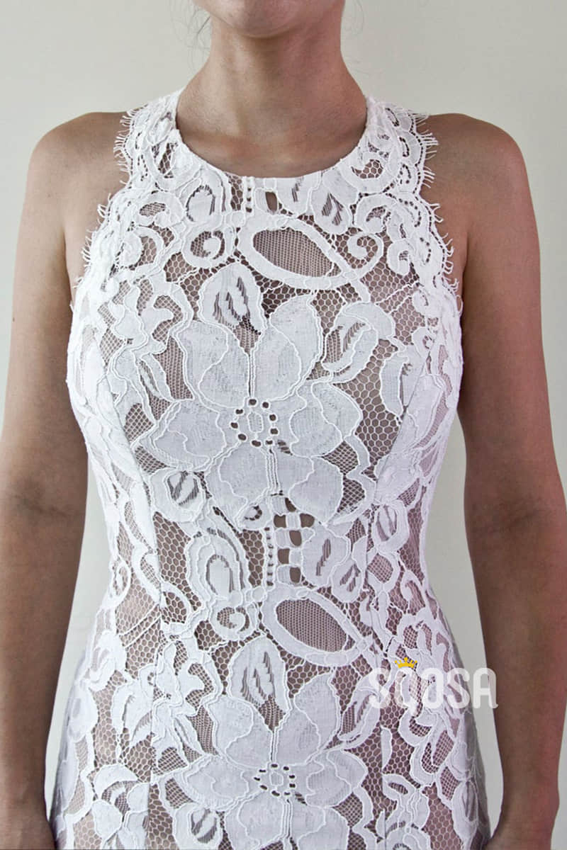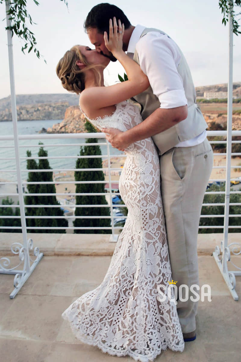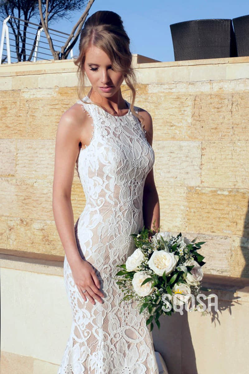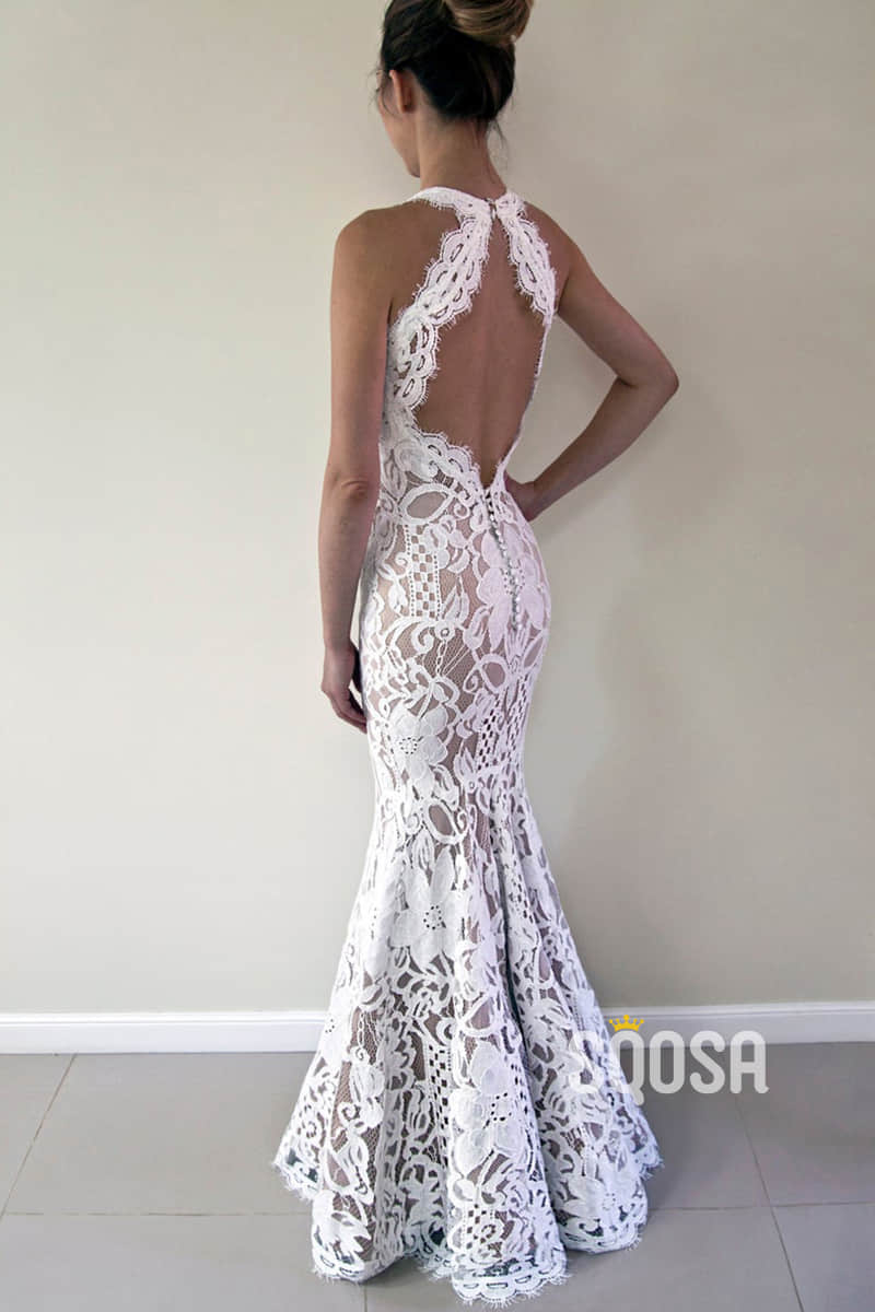 Unique Bateau Neckline Lace Mermaid Wedding Dress QW2452