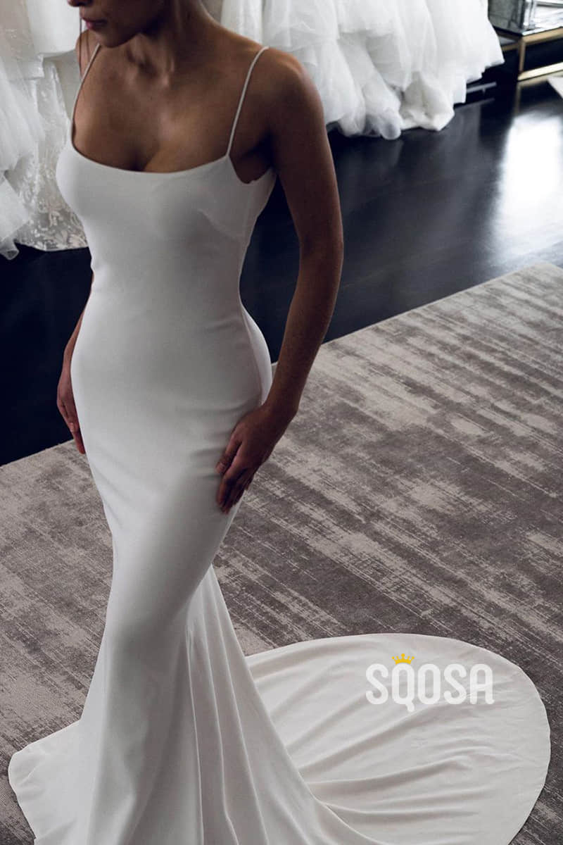 Unique Scoop Elastic Satin Simple Wedding Dress Backless QW2484