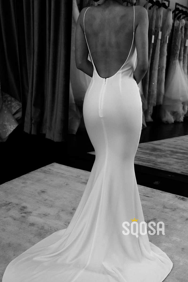 Unique Scoop Elastic Satin Simple Wedding Dress Open Backless