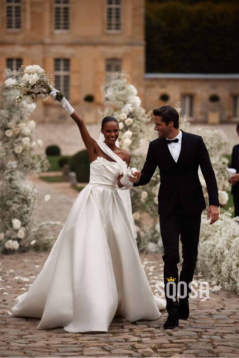 A Line Strapless Satin Pleats Elegant Wedding Dress QW2490