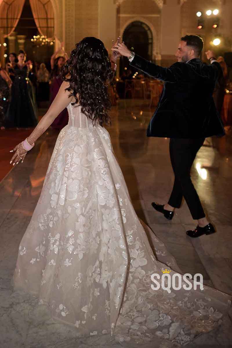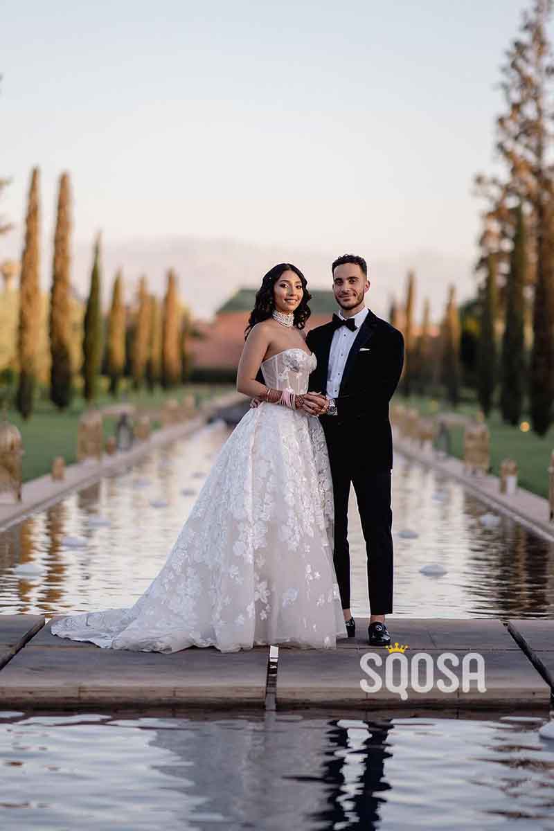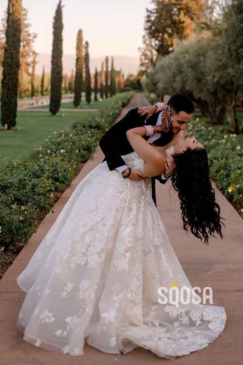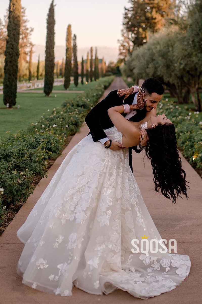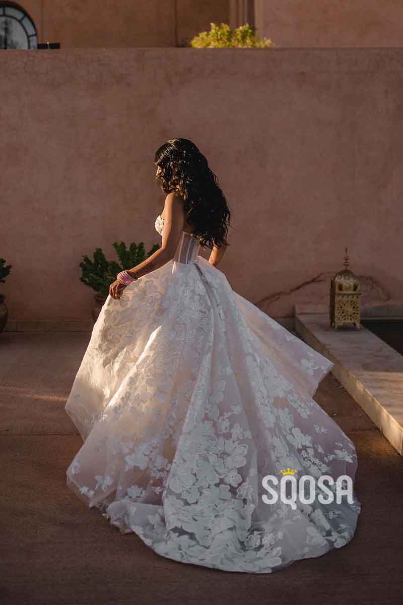 A Line Sweetheart Romantic Lace Wedding Dress with Sweep Train QW2511