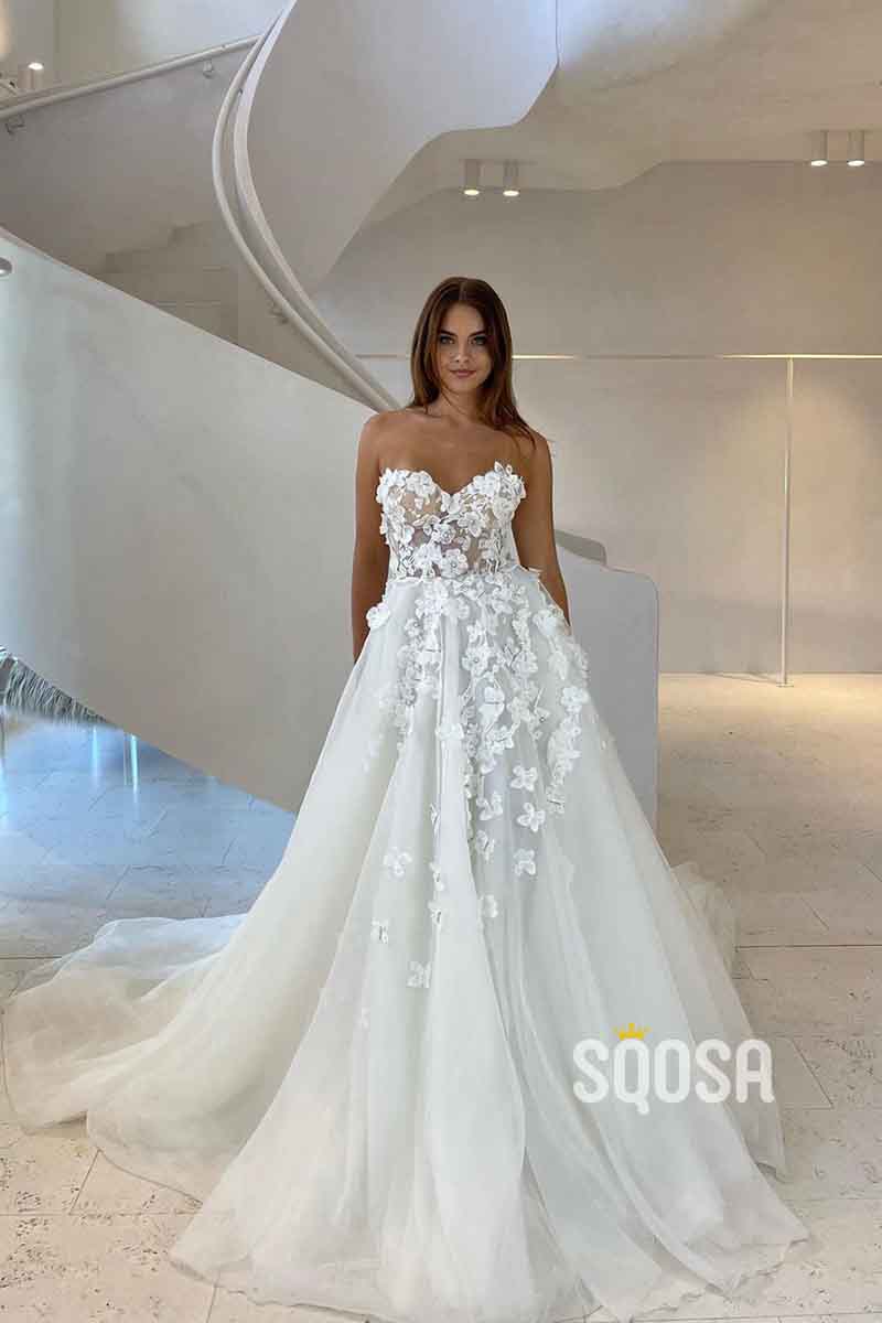 A Line Sweetheat Lace Appliques Romantic Wedding Dress QW2526