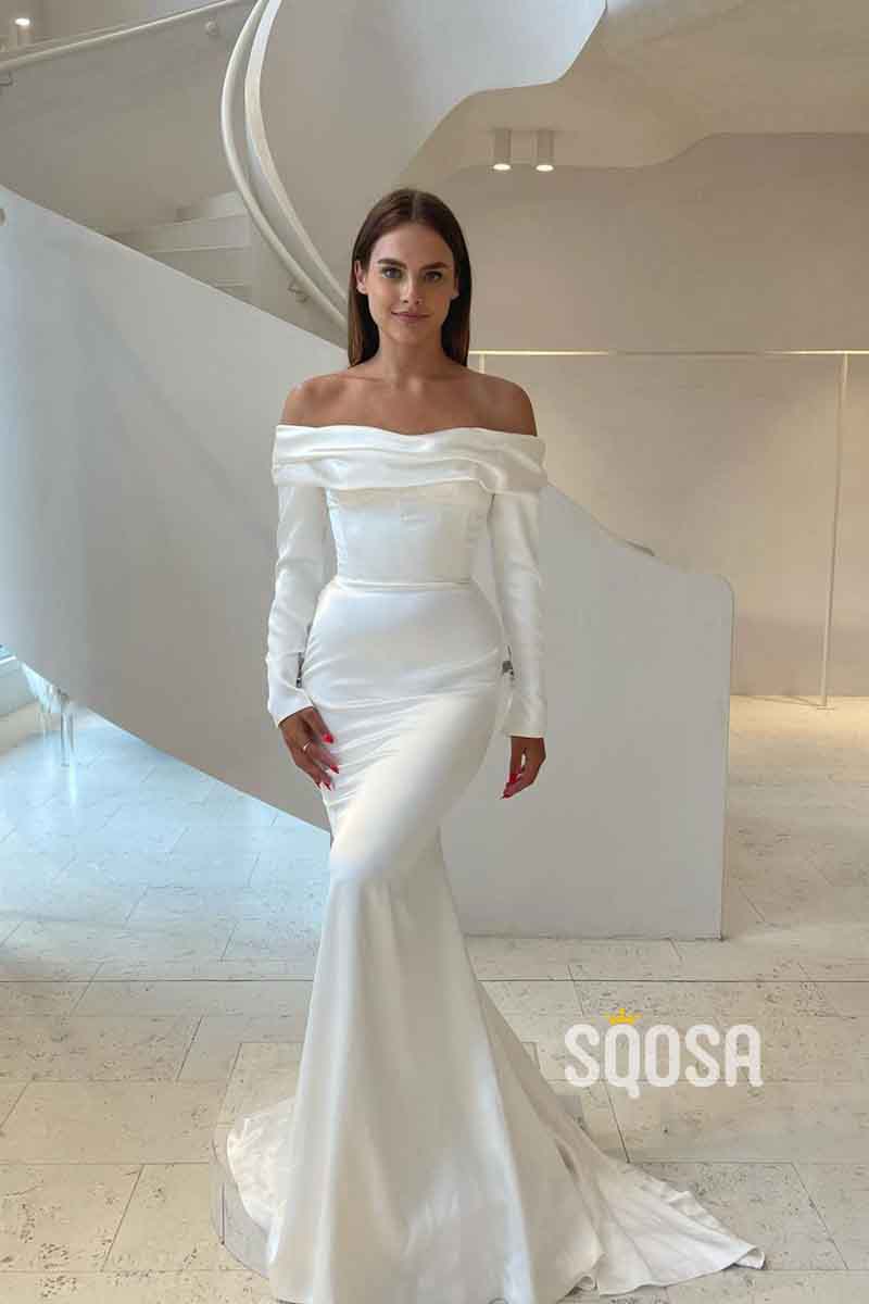 Unique Strapless Long Sleeves Elegan Mermaid Wedding Dress QW2527