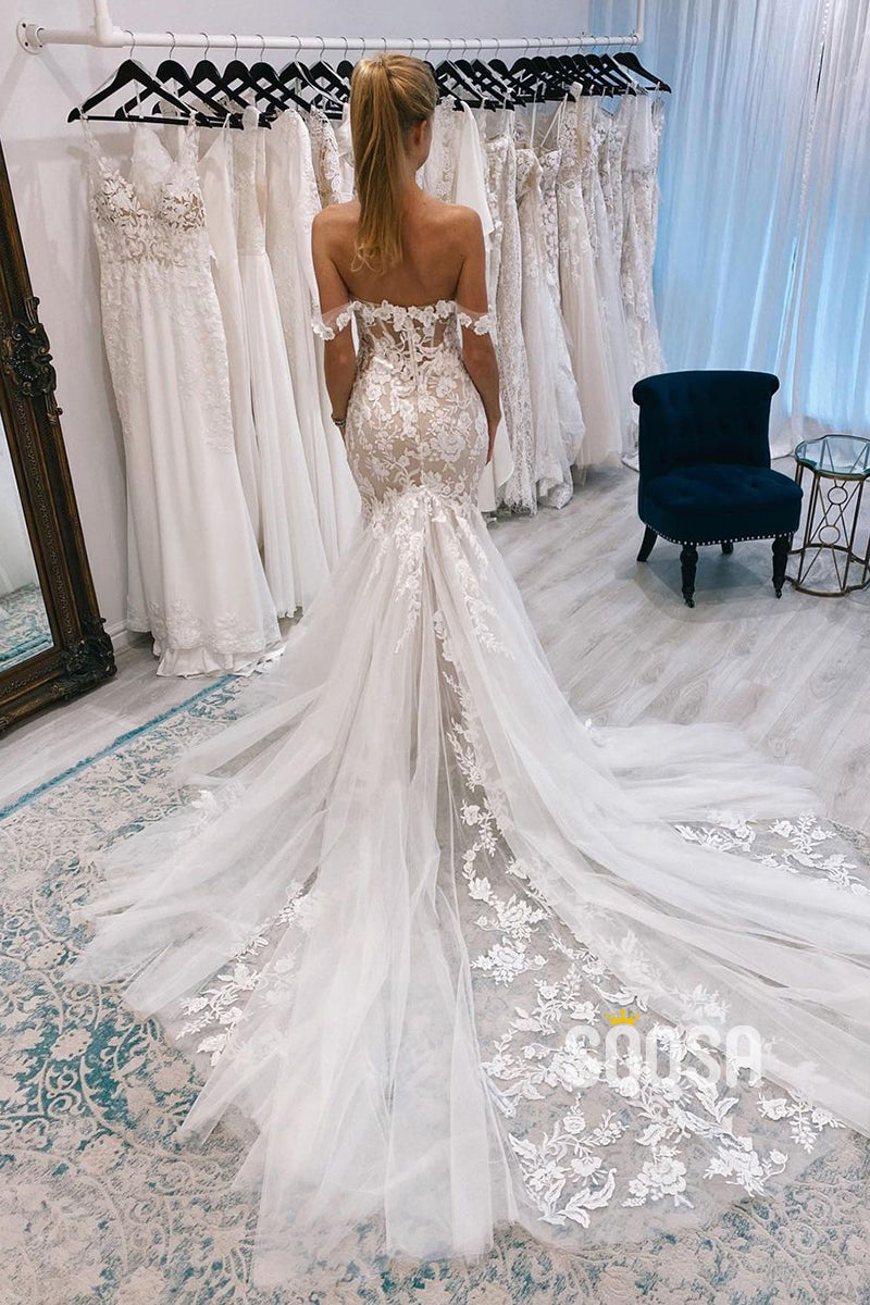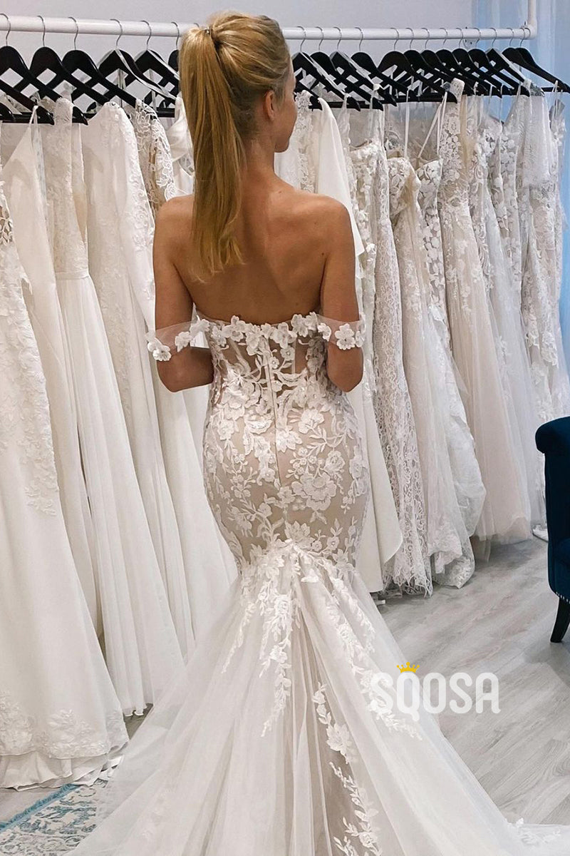 Chic Off the Shoulder Lace Appliques Mermaid Wedding Dress QW2532