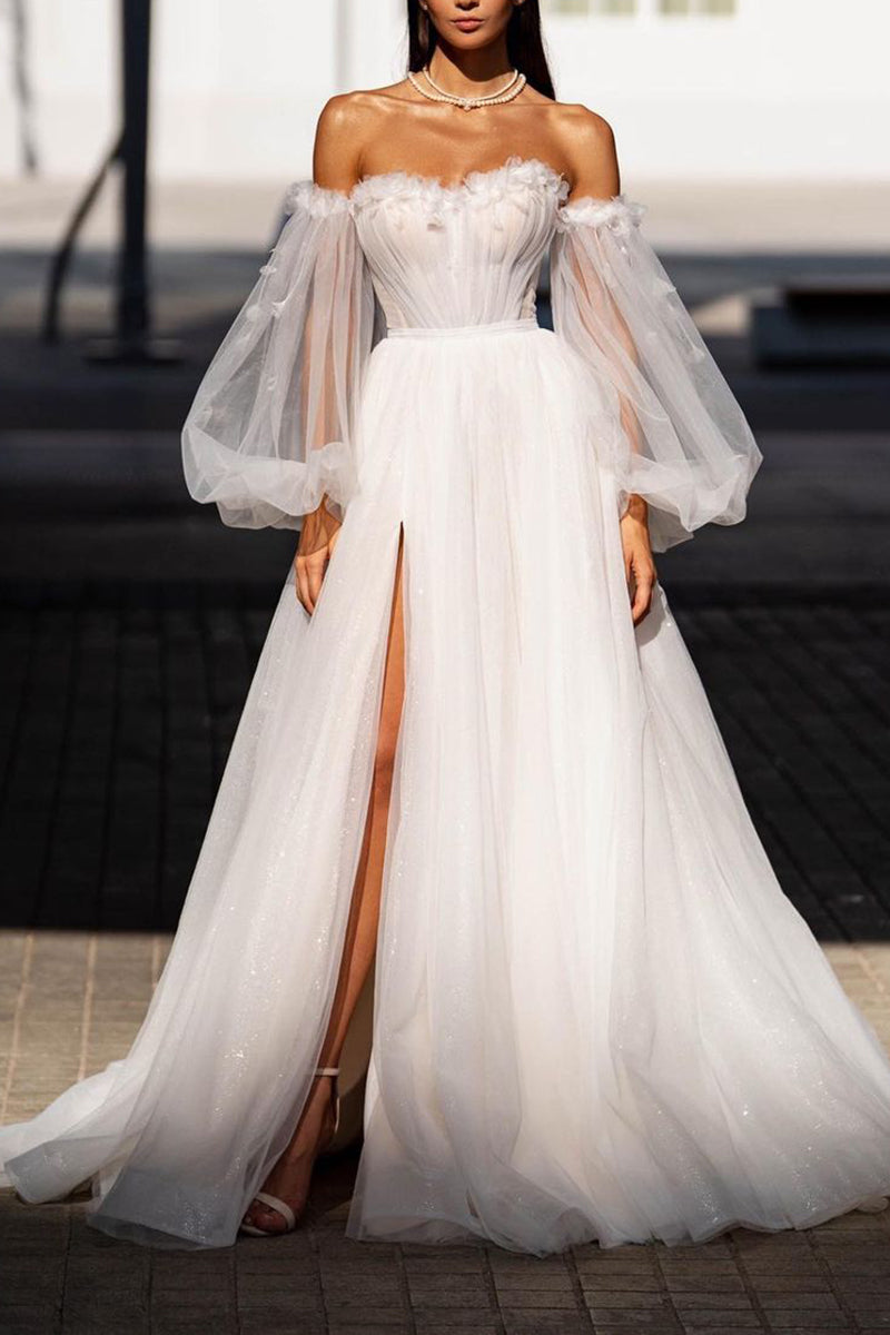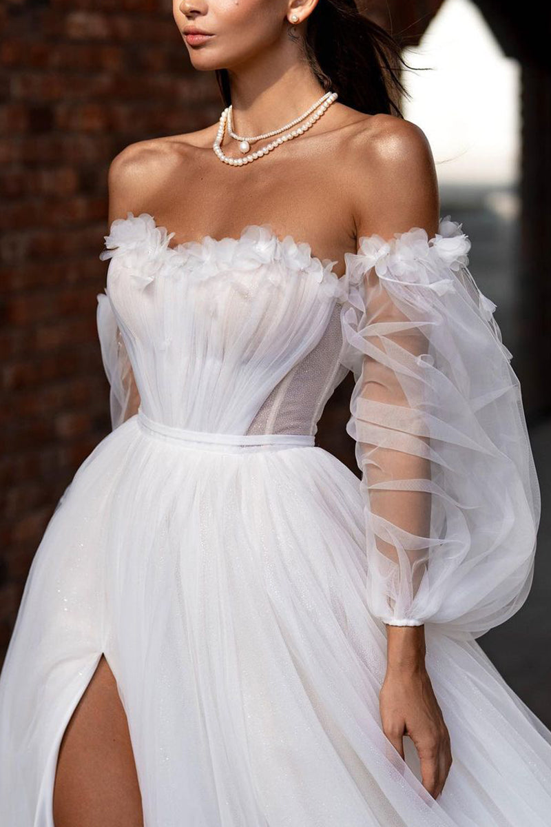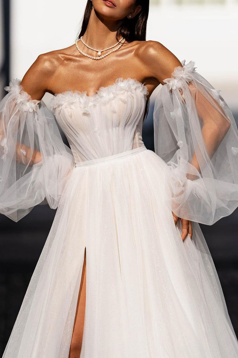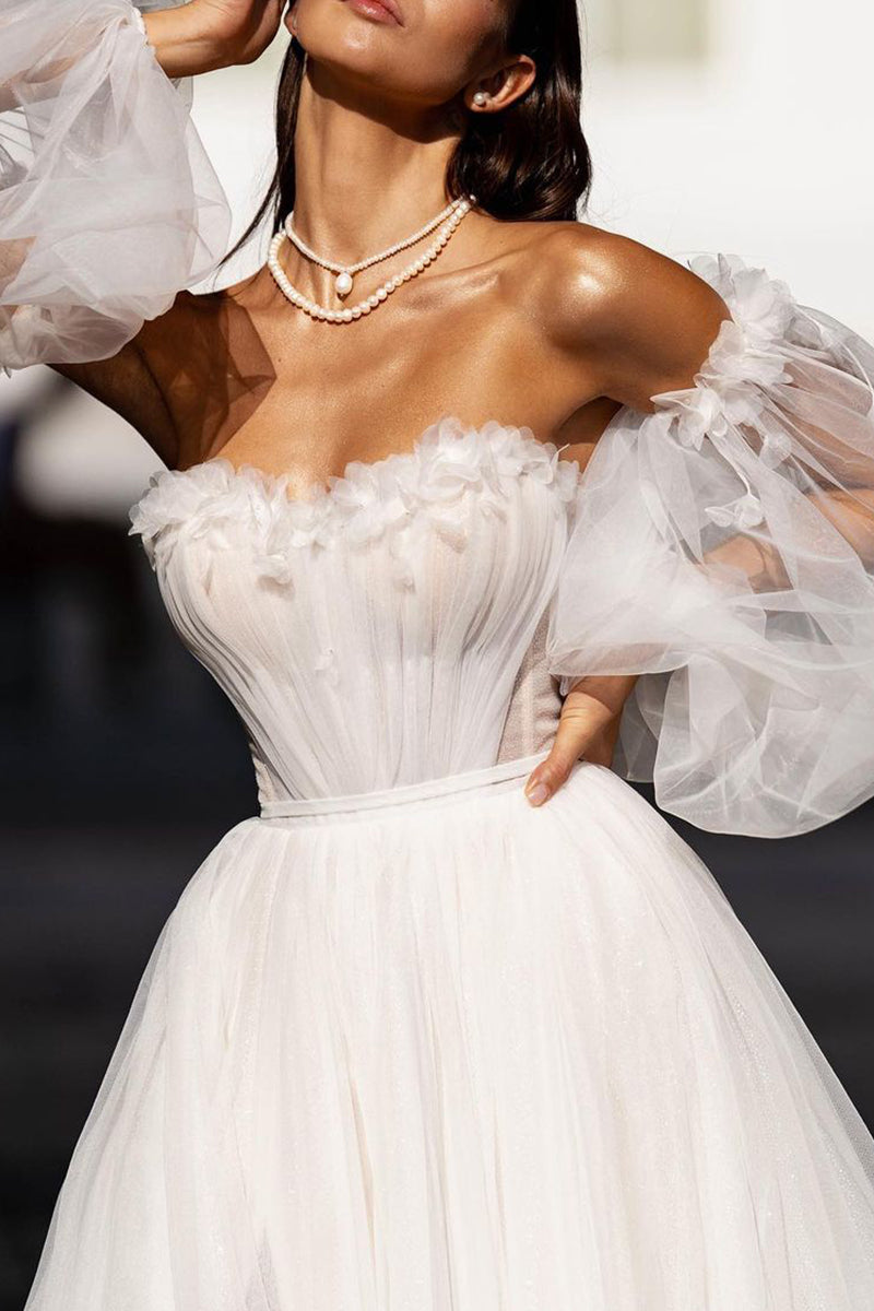 A Line Sweetheart Hall Casual Wedding Dress with Sleeves Appliques Bridal Gowns
