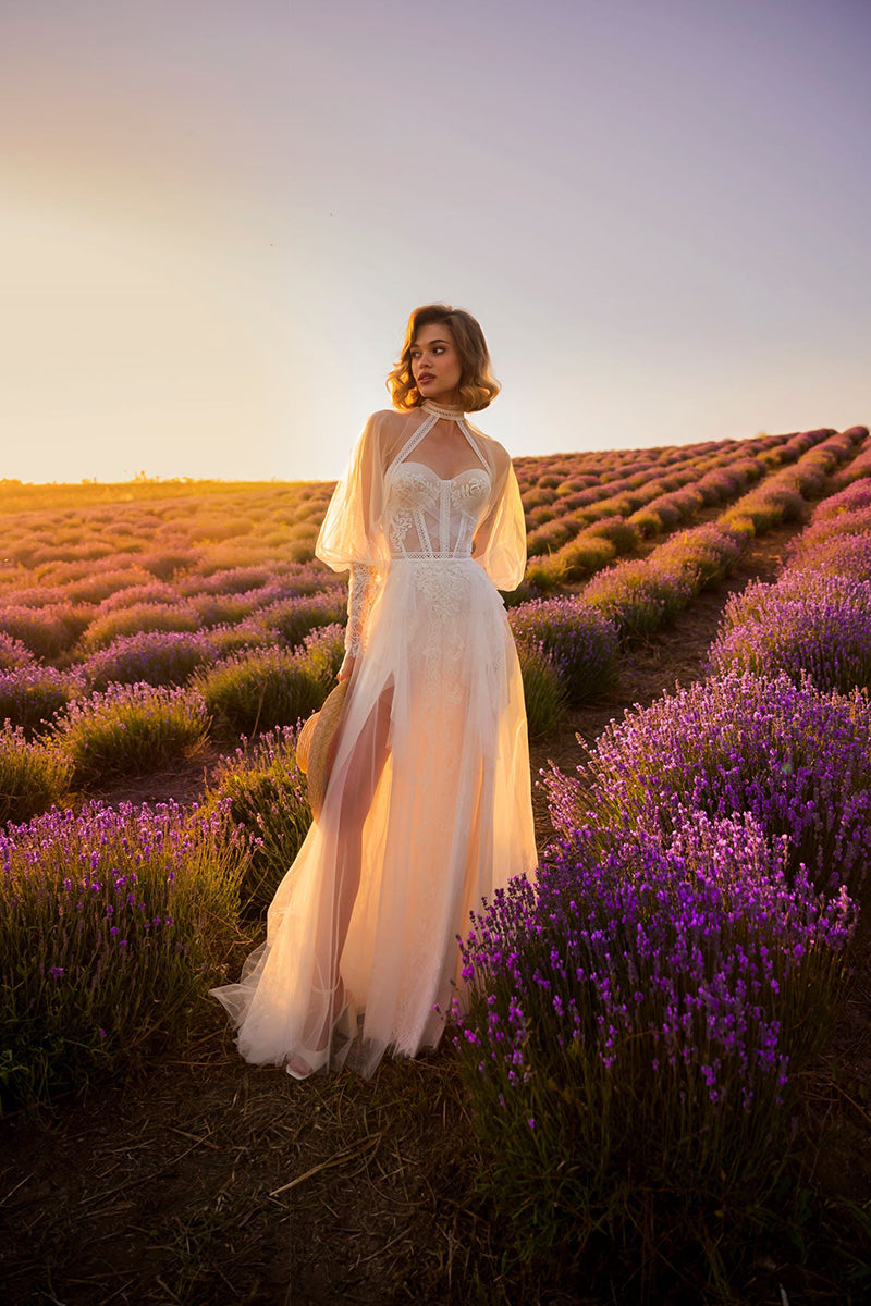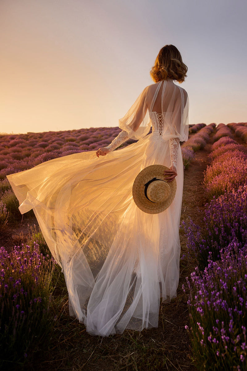 A Line Sweetheart Romantic Lace Appliques Long Sleeves Boho Wedding Dress