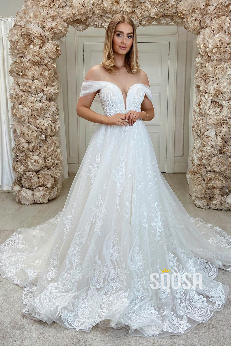 Unique Off-the-Shoulder Appliques A-line Wedding Dress QW2677