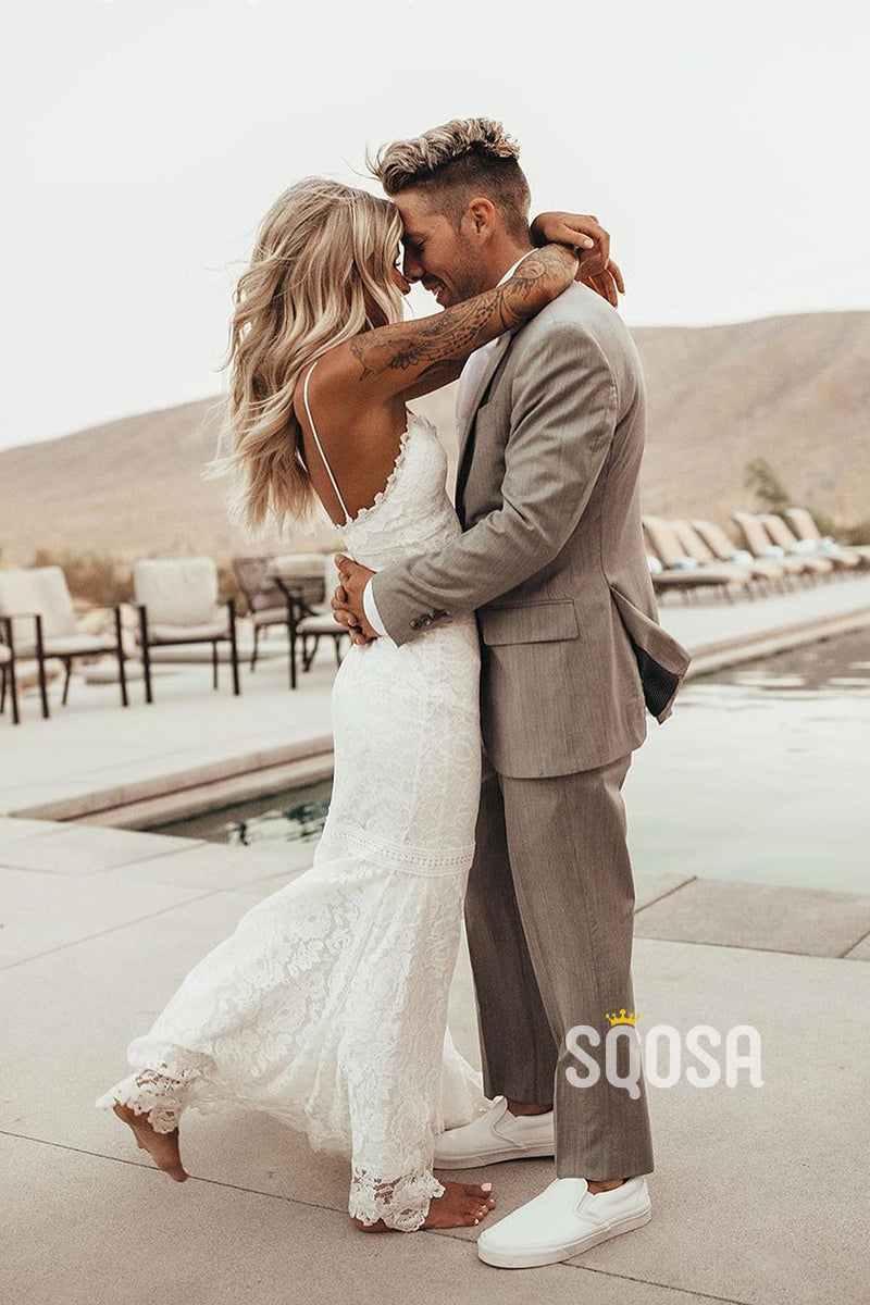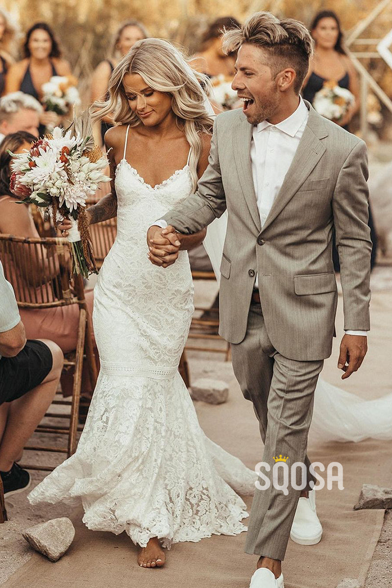 Allover Lace Spaghetti Straps Mermaid Wedding Dress QW2697