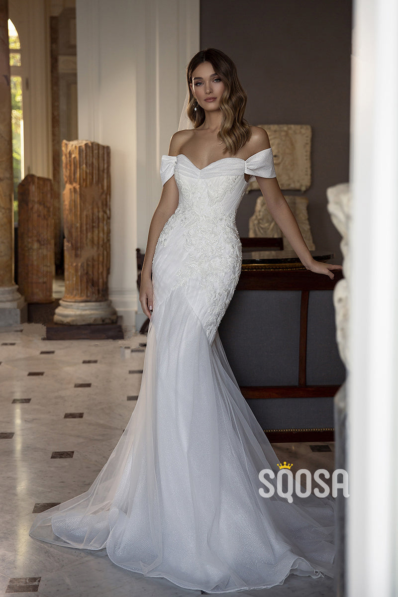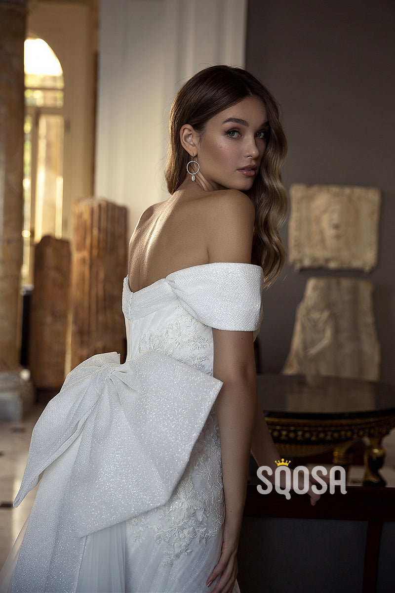 Mermaid Off-Shoulder Applique Bowknot Wedding Dress Bridal Gowns With Train QW8072
