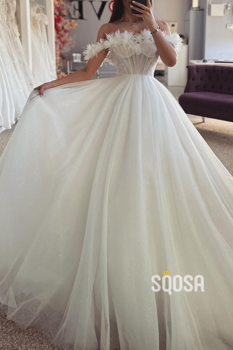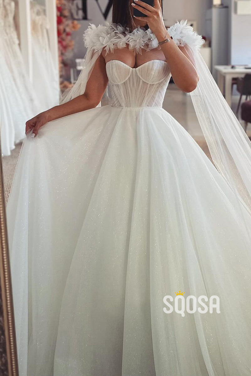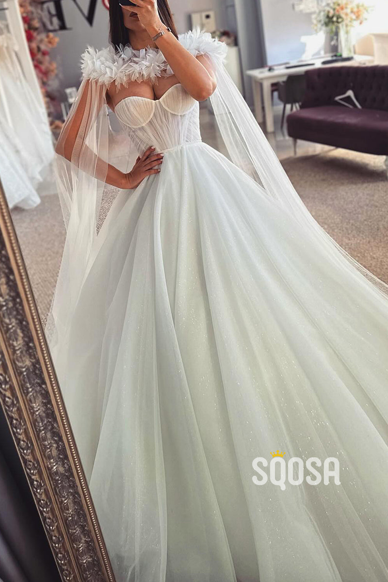 Tulle A-Line Empire Glitter With Detachable Bolero Wedding Dress QW8145