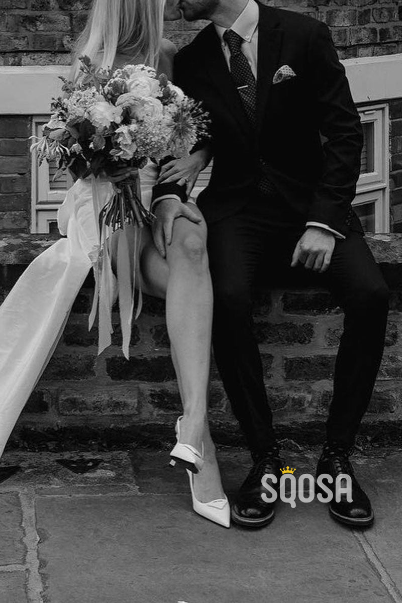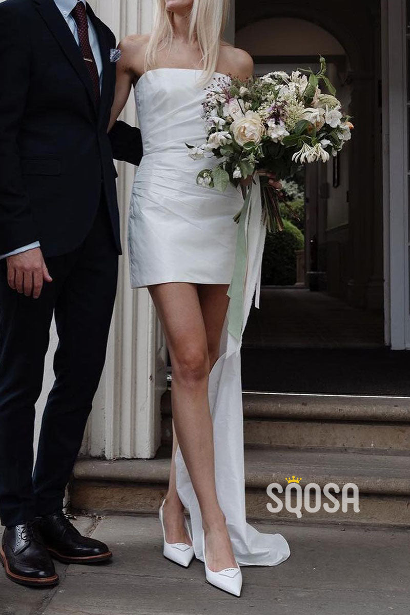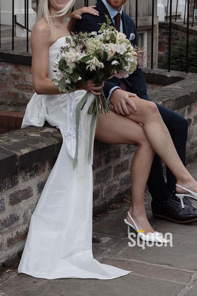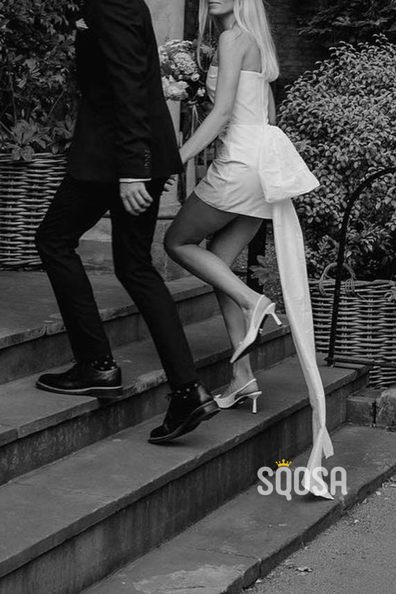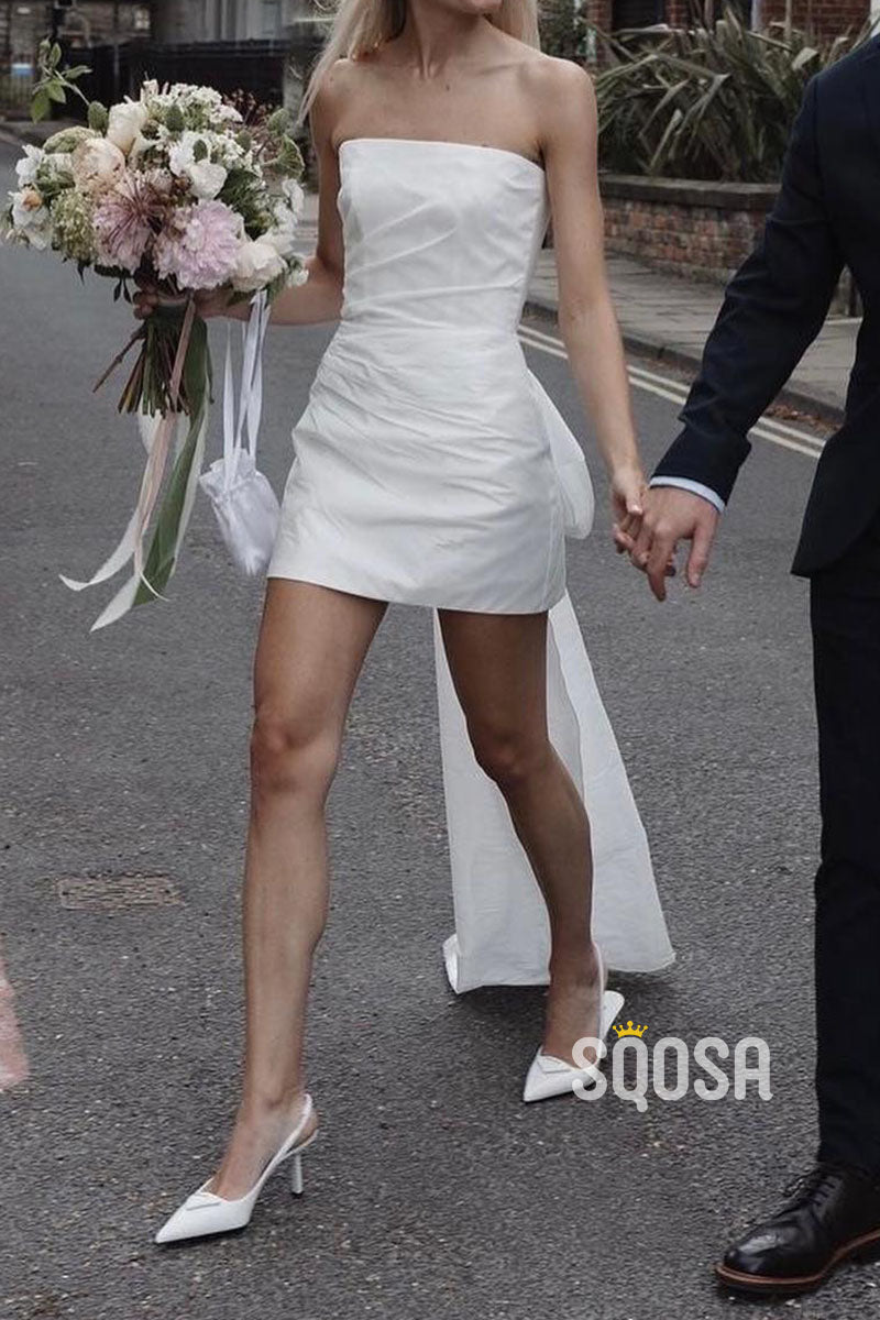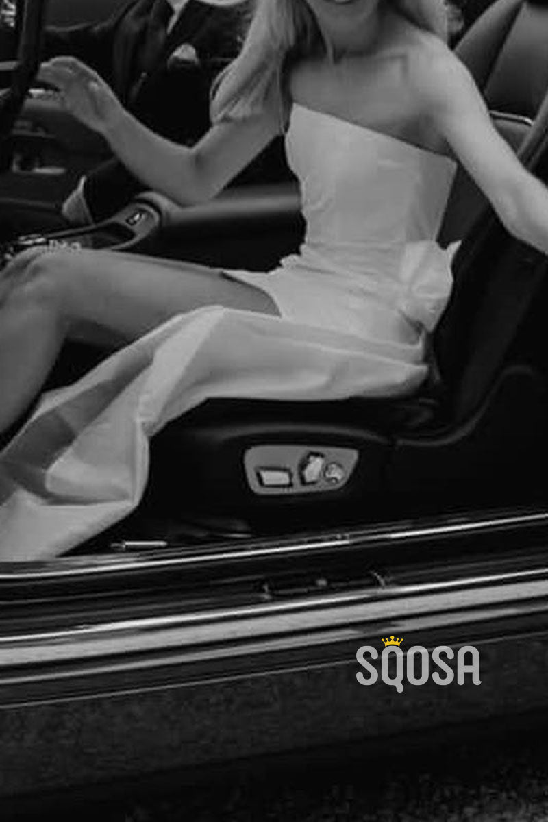 Fitted Chic Satin Strapless Sleeveless Bowknot Wedding Dress QW8195