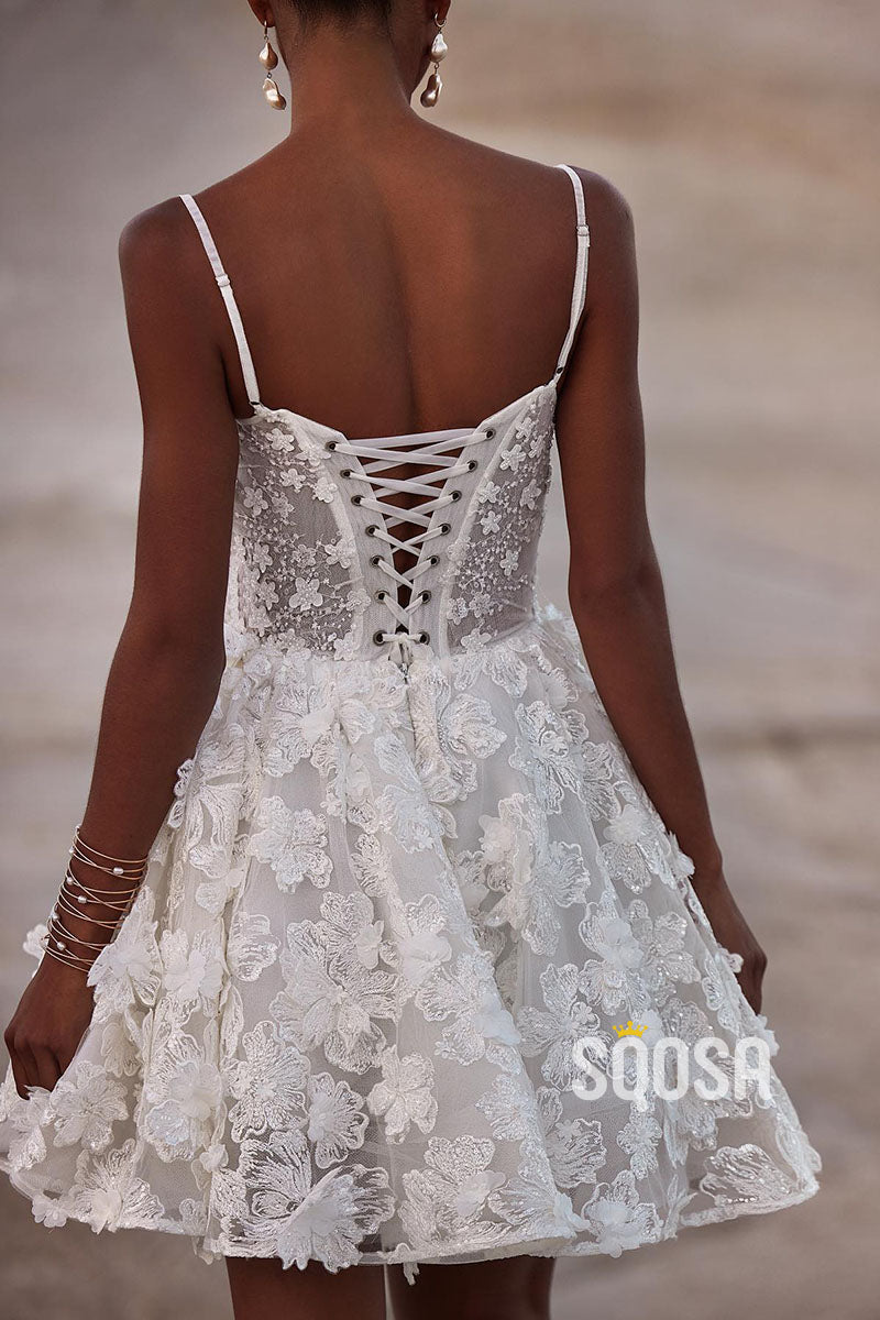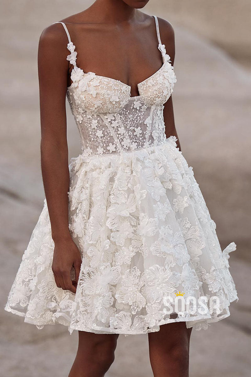 Sexy A-Line Sweetheart Spaghetti Straps Floral Embellished Wedding Dress QW8200