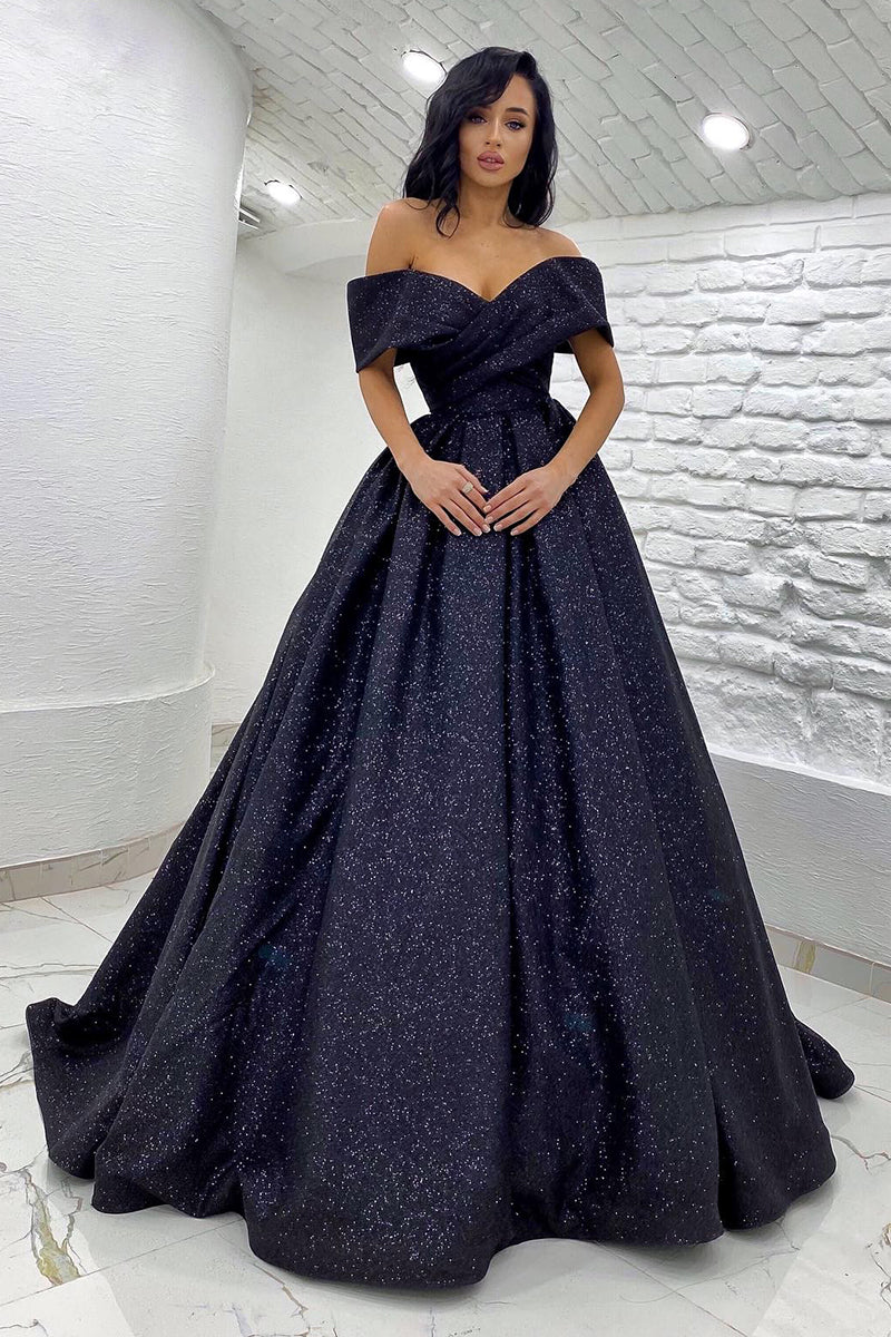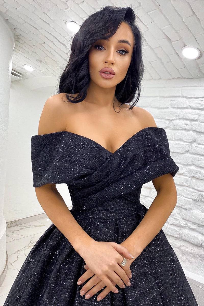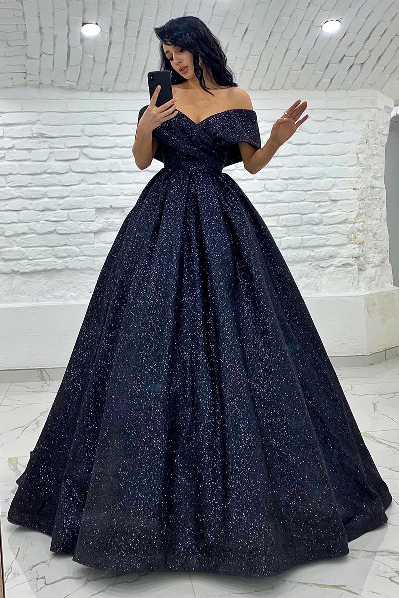 Off the Shouler A-line Sparkly Prom Dress with Pockets