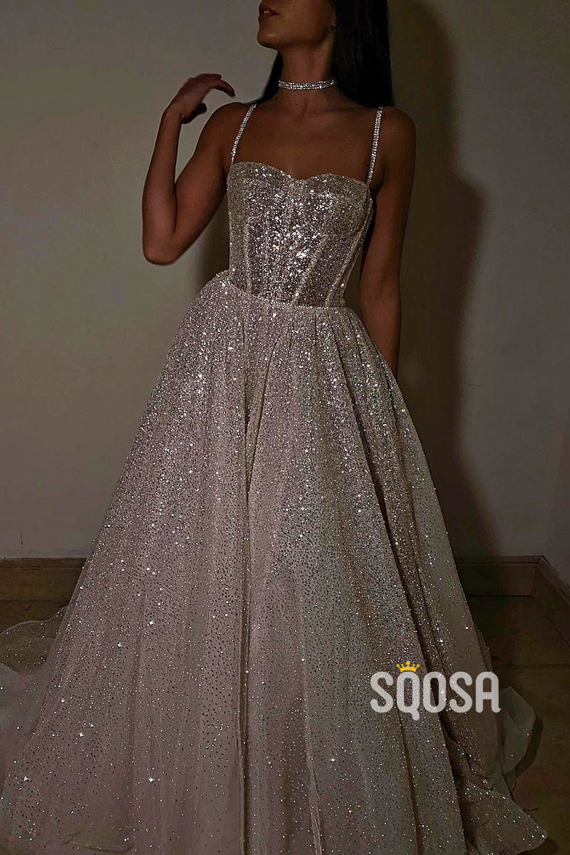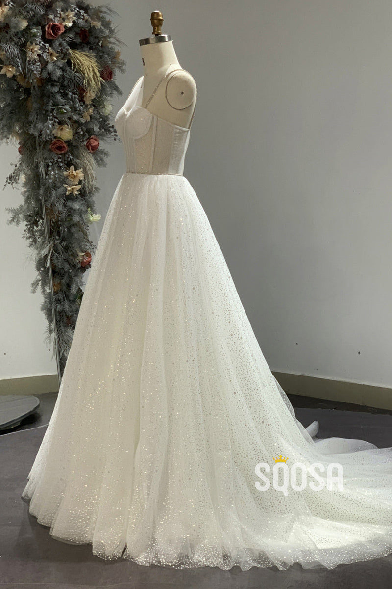 Women's Spaghetti Straps Sparkly Bohemian Wedding Dress QW2218