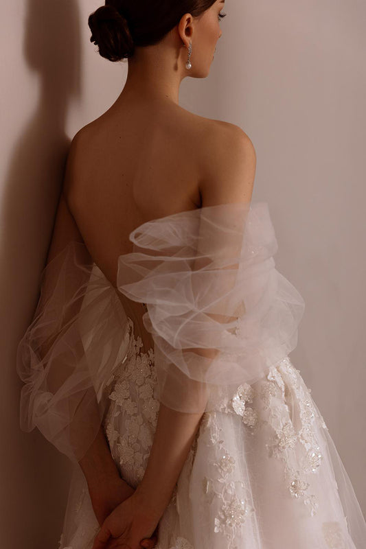 Unique Off-Shoulder Tulle Pleats Bohemian Wedding Dress QW2421