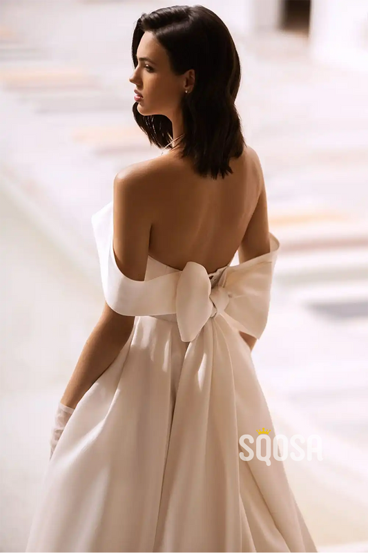 A-line Sweetheart Ivory Satin Rustic Wedding Dress Bridal Gown QW2320