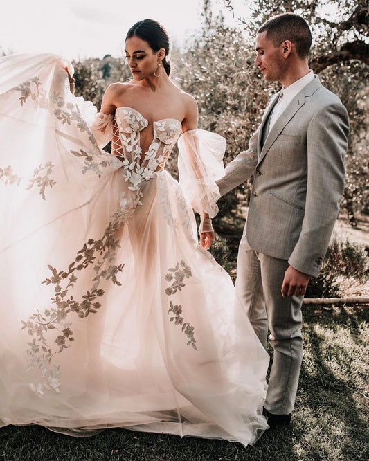 A-line Sweetheart Lace Appliques Bohemian Wedding Dress QW2468