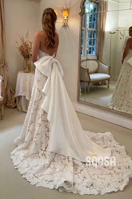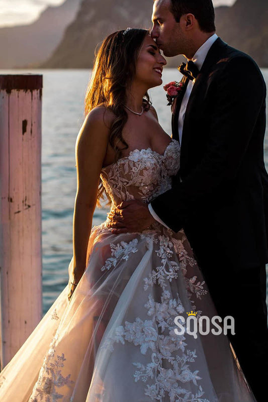 A-line Sweetheart Allover Lace Wedding Dress Bridal Gown QW2422