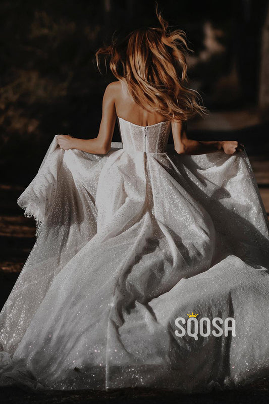A-line Sweetheart Sequins Beach Wedding Dress QW2302