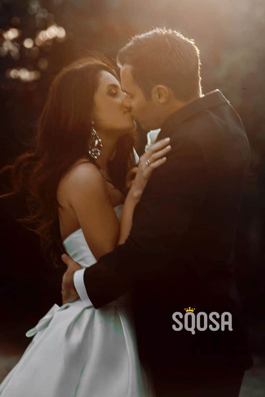 A-line Strapless Ivory Satin Rustic Wedding Dress with Pockets QW2331