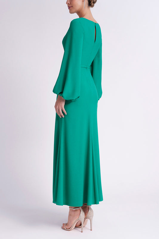 V-Neck Long Sleeve A-Line Empire With Slit Cocktail Evening Dress QM3365