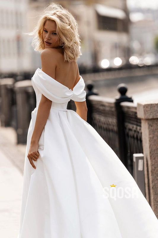 A Line Off Shoulder Elegant Satin Wedding Dress QW2412