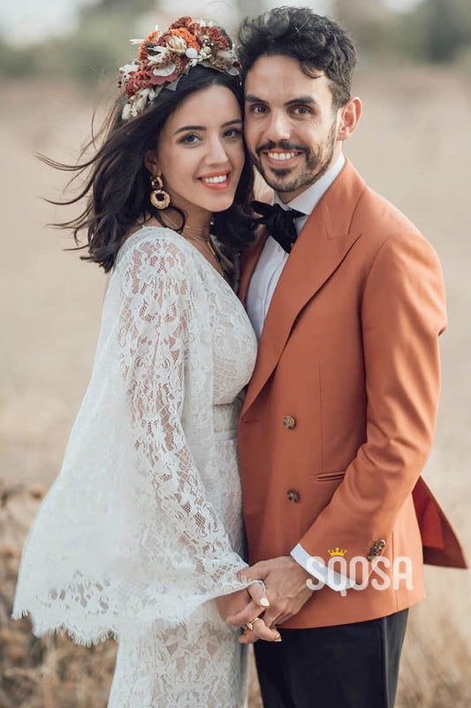 Sexy V-neck Exquisite Lace Bohemian Wedding Dress QW2433