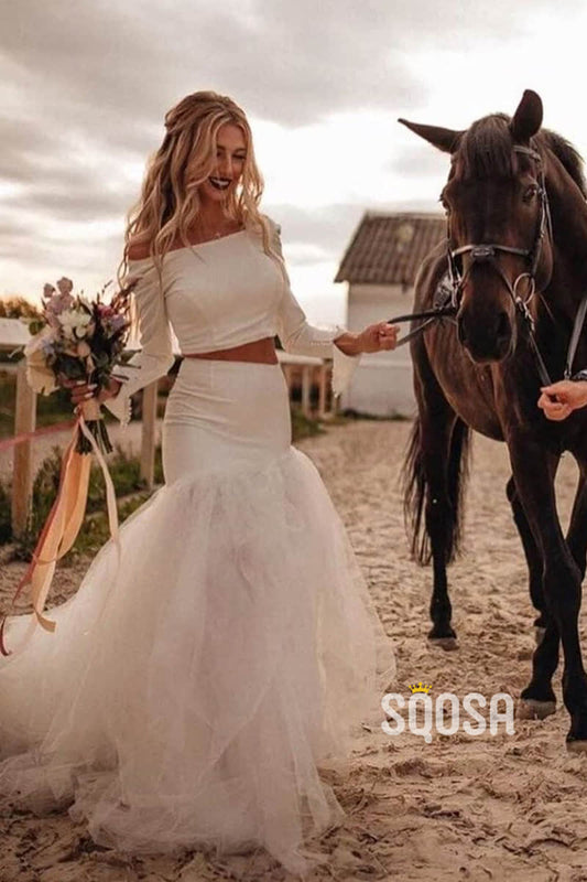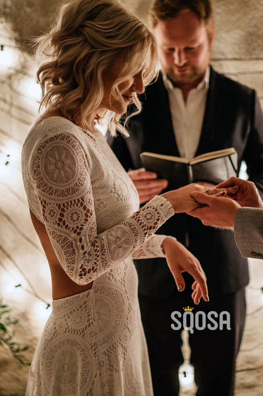 Unique Scoop Long Sleeves Two-Piece Bohemian Wedding Dress QW2423