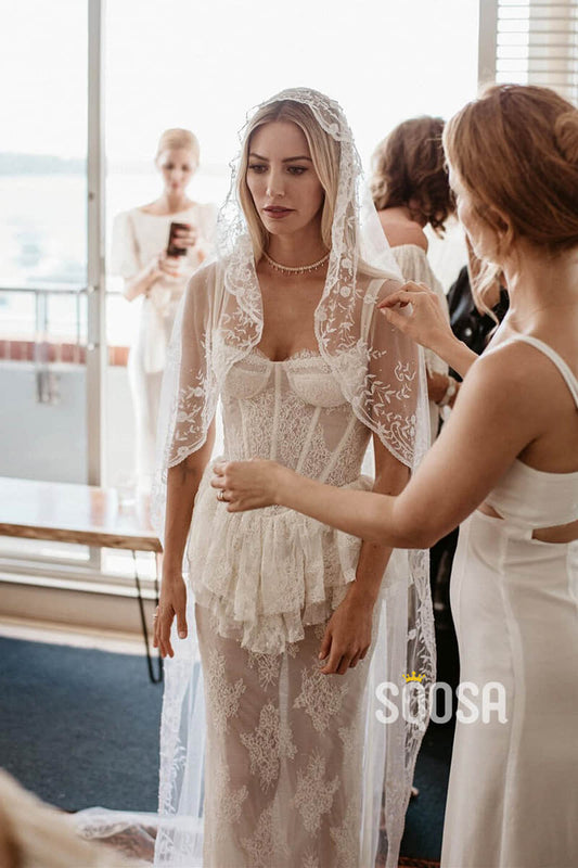 Sheath/Column Sweetheart Illusion Lace Bohemian Wedding Dress QW2474