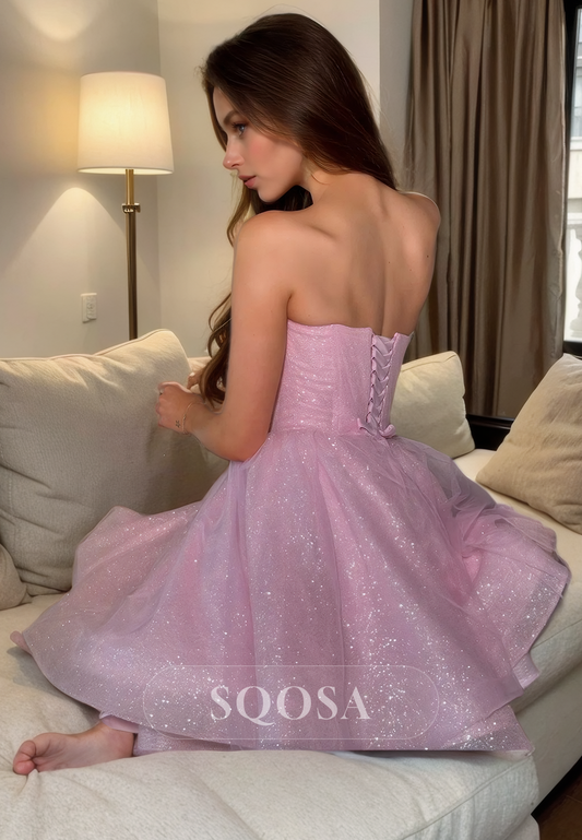 A Line Strapless Pleats Cute Homecoming Dress Short Graduation Dress