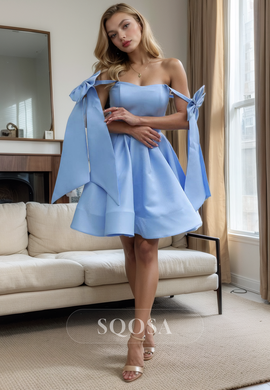 A Line Strapless Cute Bow Homecoming Dress Short Prom Dress