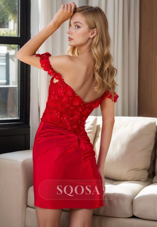 Sheath Off Shouler 3D Appliques Red Homecoming Dress Tight Short Graduation Dress