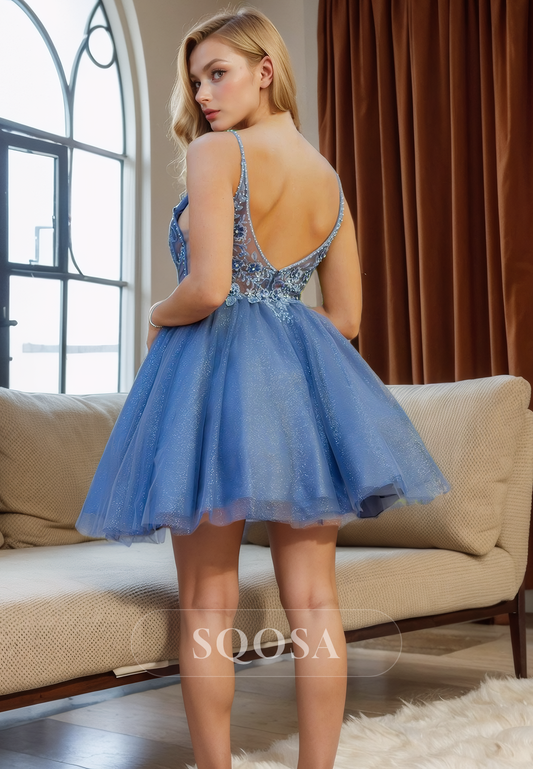 A Line Spaghetti Straps Tulle Short Homecoming Dress 2024 Prom Dress