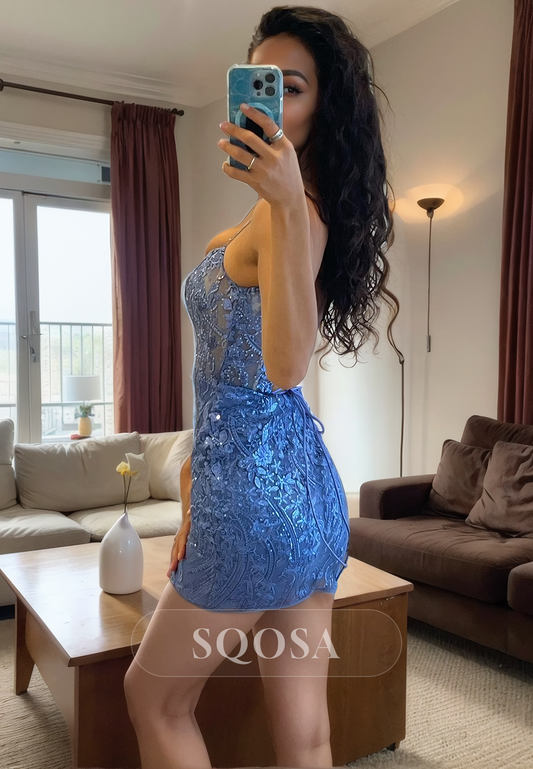 Spaghetti Straps Sequins Sparkly Homecoming Dress Tight Short Prom Dress