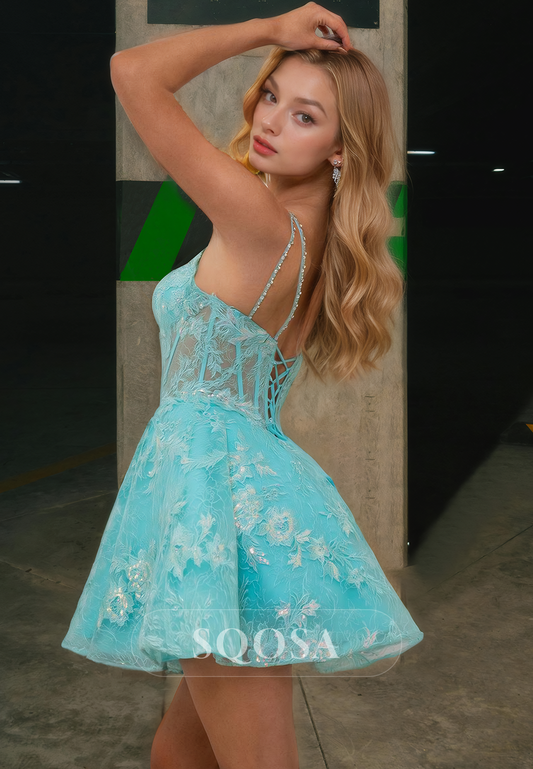 Spaghetti Straps Appliques Sequins Homecoming Dress Short Prom Dress