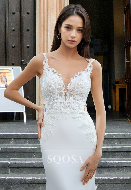 Sexy V-Neck Lace Appliques Mermaid Wedding Dress QW2504