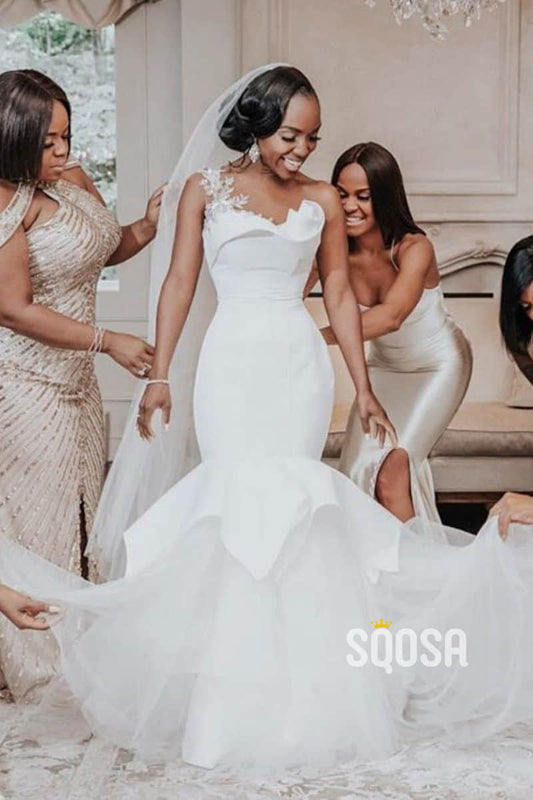 Unique One Shoulder Appliques Mermaid Wedding Dress QW2483