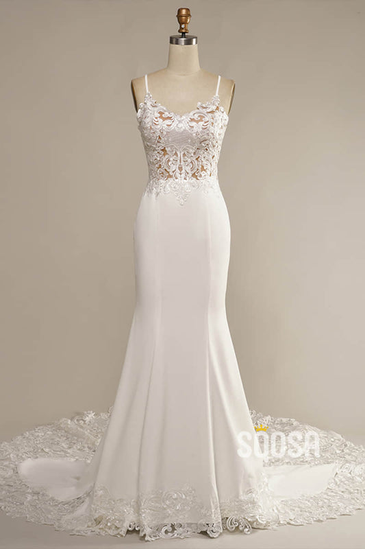 Spaghetti Straps Exquisite Lace Wedding Dress Mermaid Gown QW2519