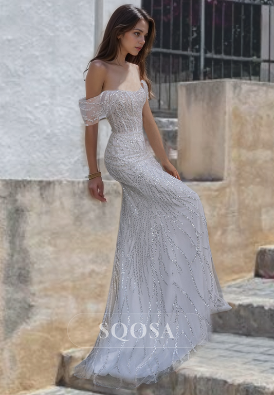 V-Neck Spaghetti Straps Boho Wedding Dress Off-Shoulder Mermaid Beach Wedding Gown